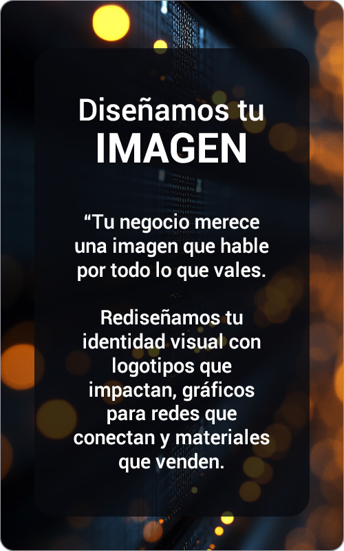 Tu negocio merece una imagen que hable por todo lo que vales. Rediseñamos tu identidad visual con logotipos que impactan, gráficos para redes que conectan y materiales que venden. Haz que tu marca se vea tan profesional como lo que ofreces.